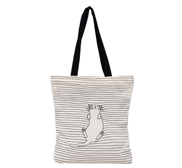 With 12 different designs from cats and flowers to stripes and solids, you can switch your bags every day of the week for every outfit change! This tote features an inner pocket as well and measures 14.2 inches x 15.3 inches. These are perfect for kids because the bag is multipurpose and can be used as an everyday bag for school, sports, or weekend sleepovers. It is durable, long-lasting, and fade-resistant, not to mention super cute! It retails for $9.90. I seriously can’t get over how stinkin cute this cat is!!