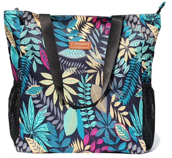 This tote is Amazon’s #1 Bestseller, retails for $25.99 and comes in 33 different patterns. It measures 14.6 x 15.4 x 4.7 inches (W x H x D) and features multiple pockets. It has a cute design with various patterns to choose from. The tote has a zipper closure and an outer zippered pocket, offering more protection for your items. The tote bag is also made out of outdoor fabric, making it water-resistant.