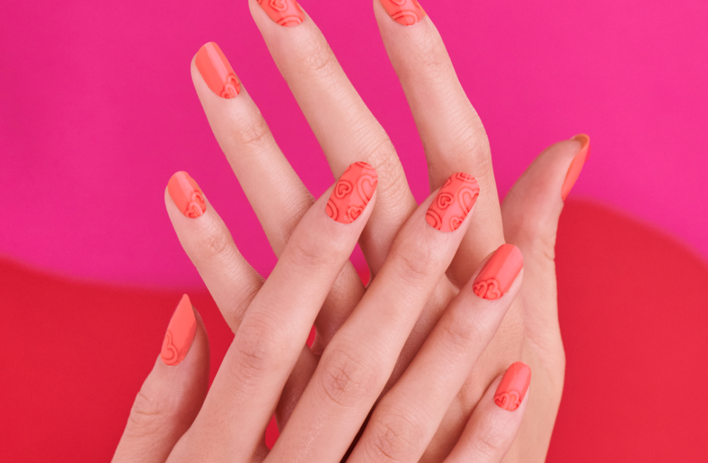 Heartthrob: Make hearts skip a beat with Heartthrob, a creamy, juicy coral color with playful heart-shaped designs. Creme finish.